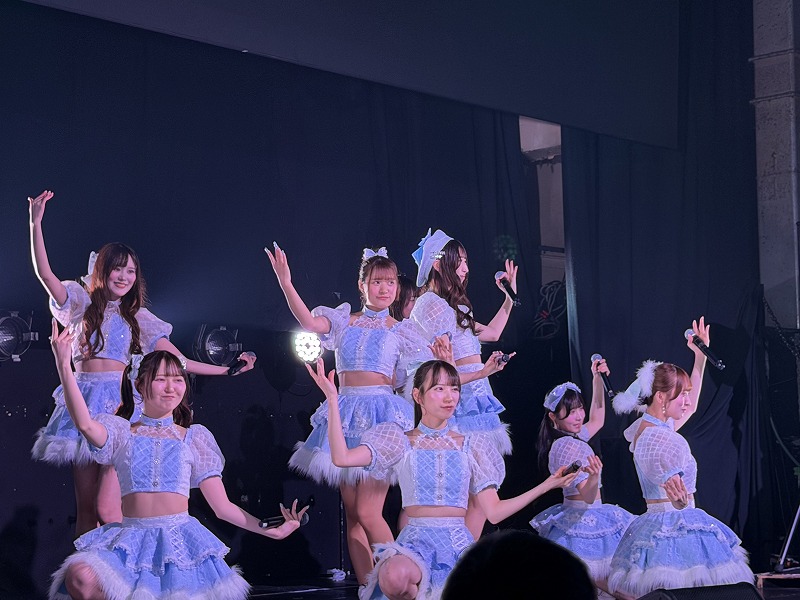 そのあとに届けたのが、『胸熱アンドロメダ』。先の楽曲で観客たちのハートを胸アツにしたところへ、彼女たちは恋心を熱く真っ直ぐに届ける歌を持ってきた。「胸が熱いよ」の歌詞のように,8人が情熱的に恋心をぶつけるたび、同じように胸を熱くせずにいれなかった。