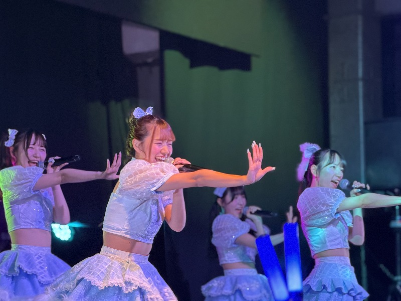 続く、大人の情熱的な恋心を歌った『ガチ恋ペペロンチーノ』では、歌詞に込めた深い想いをどれだけ感情的に歌えるのか、どこか背伸びをしてしまうのかにも、メンバー内に生まれる表現の経験差を覚えていた。むしろ、たくましさと初(うぶ)さの両面が同居しているところが、今のSAY-LAの魅力なのかもしれない。対して、ピュアな思いや愛らしさを前に押し出した『水色ラフレシア』では、8人が同じ思いを共有しながら、心を一つにして歌う姿を見せていた。