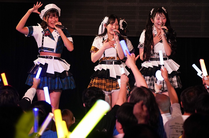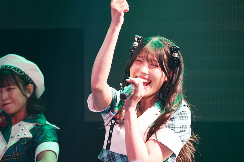「あなたとの思い出がどこまでも届いて空に映りますように」の言葉に続いて、『STAR LIGHT~星色のこの気持ち、空に映れ~』を歌いだした。「STAR LIGHT」の声を合図に楽曲が躍動するや、待ってましたとばかりにフロア中から「お前が一番」コールが上がれば、熱を抱いたエールが飛び交う。まだまだ未完成の新メンバーたちをさりげなくカバーしていく他のメンバーや、その姿を温かく見守りながら熱い声を上げる観客たち。どんなに時が経とうとも、ずっと未完成の危うさを感じながら、一緒に欠けたピースを埋めていける。それを楽しめるのは本当に素敵なことだ。